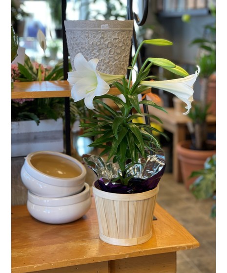 With large white, trumpet-shaped blooms and a delightful fragrance, our Easter lily brings timeless beauty to the festive holiday celebration. This signature spring plant arrives budding and ready to blooms.