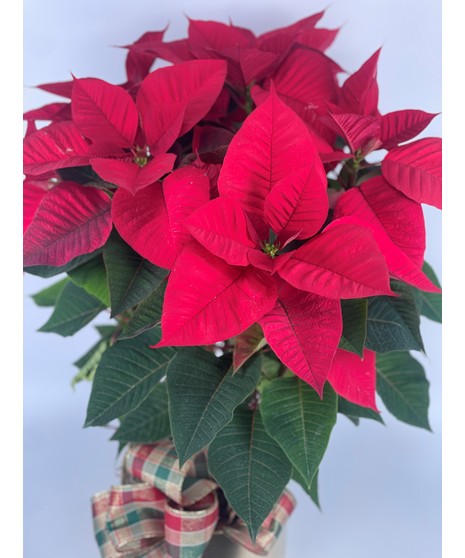 Brighten up your festive season with this radiant 6-inch poinsettia, the quintessential Christmas Flower! It's a jubilant explosion of holiday red that's sure to invoke the spirit of joy and celebration in any setting. This merry beauty is nestled in a charming basket, tied with a shimmering silver bow that twinkles with the magic of the season. Ideal for creating that warm, holiday welcome in any nook, this poinsettia's compact size makes it a versatile addition to your yuletide decor. Whether it's gracing your dinner table, perched on a windowsill, or adding a dash of color to your office, it's a delightful nod to tradition that's bound to please. Caring for this festive gem is a breeze, ensuring it remains a jolly sight throughout the holidays. Just keep it cozy away from chilly drafts, bask it in gentle, indirect light, and water to the tune of "Jingle Bells"—sparingly, that is!